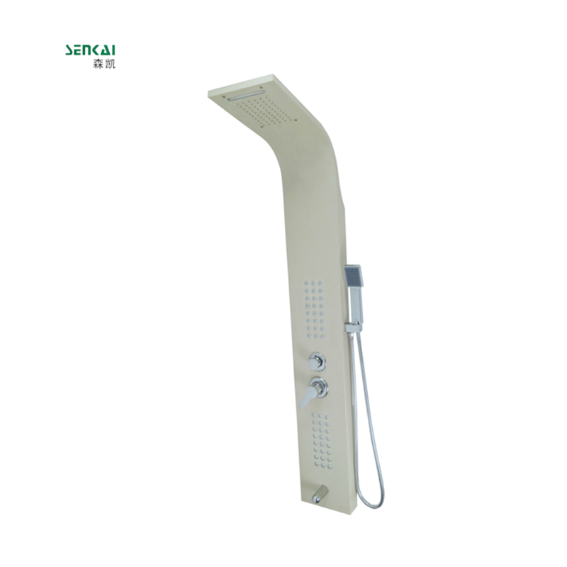 臺州森凱潔具有限公司名稱:五檔米色背噴24孔淋浴面板體重:6 kg 尺寸:1570*275*575*170mm